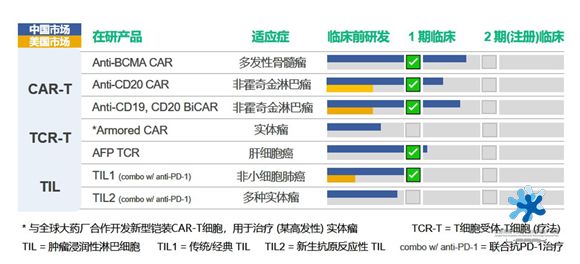 西比曼生物致力于開發(fā)用于治療癌癥和退行性疾病的專有細(xì)胞療法,在馬里蘭州羅克維爾的研發(fā)中心擁有5條GMP產(chǎn)品線,在中國無錫和上海的GMP設(shè)施由12條獨立的細(xì)胞生產(chǎn)線組成。公司的細(xì)胞療法技術(shù)平臺覆蓋血液瘤,實體瘤和干細(xì)胞療法,CAR-T 治療血液癌方面的研究包括潛在同類最佳的C-CAR039(治療復(fù)發(fā)或難治性B細(xì)胞非霍奇金淋巴瘤(r/r B-cell NHL)的新型CD19/CD20雙靶點CAR-T細(xì)胞產(chǎn)品)和C-CAR066(針對CD19 CAR-T治療復(fù)發(fā)的CD20單靶點CAR-T細(xì)胞產(chǎn)品),以及采用最新數(shù)字化生產(chǎn)體系的C-CAR088(治療多發(fā)性骨髓瘤的B 細(xì)胞成熟抗原 (BCMA) 特異性 CAR-T產(chǎn)品);實體瘤療法細(xì)胞治療平臺包括腫瘤浸潤淋巴細(xì)胞(TIL)技術(shù)以及第四代armored?CAR-T技術(shù);干細(xì)胞療法方面,AlloJoin-異體脂肪來源間充質(zhì)干細(xì)胞(haMPC)用于治療 KOA 的 II 期中國臨床試驗已完成并將啟動注冊性III期臨床,Re-join 人類自體脂肪來源間充質(zhì)祖細(xì)胞用于治療膝骨關(guān)節(jié)炎 (KOA) 的 II 期臨床試驗正在進(jìn)行中。